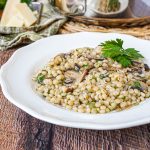 To make this Pearl Couscous with Mushrooms vegan, use all olive oil in place of the butter and omit the Parmesan topping.