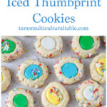 I gave these Iced Thumbprint Cookies a neutral look with basic sprinkles and green, yellow, blue, and white colors to the icing.