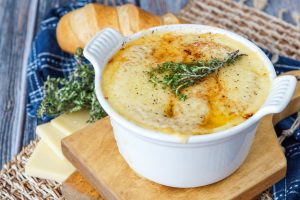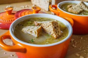 Zwiebelsuppe mit Lebkuchentorte-Croutons (German Onion Soup with Gingerbread Cake Croutons)