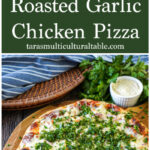 This Roasted Garlic Chicken Pizza is best warm from the oven. Leftover slices can be refrigerated in an airtight container for up to three days. Do not add the fresh herbs until immediately before serving.